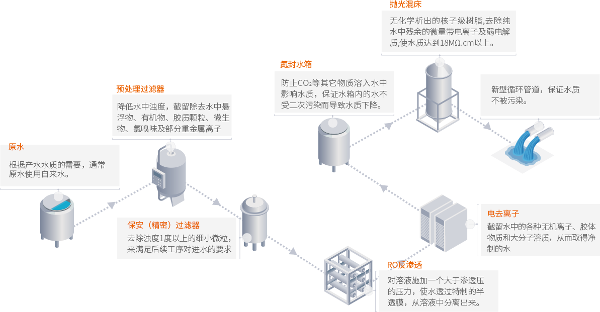 采用新型材料對(duì)管道表面進(jìn)行處理,保證系統(tǒng)運(yùn)行無污染物析出,確保系統(tǒng)內(nèi)無死水。