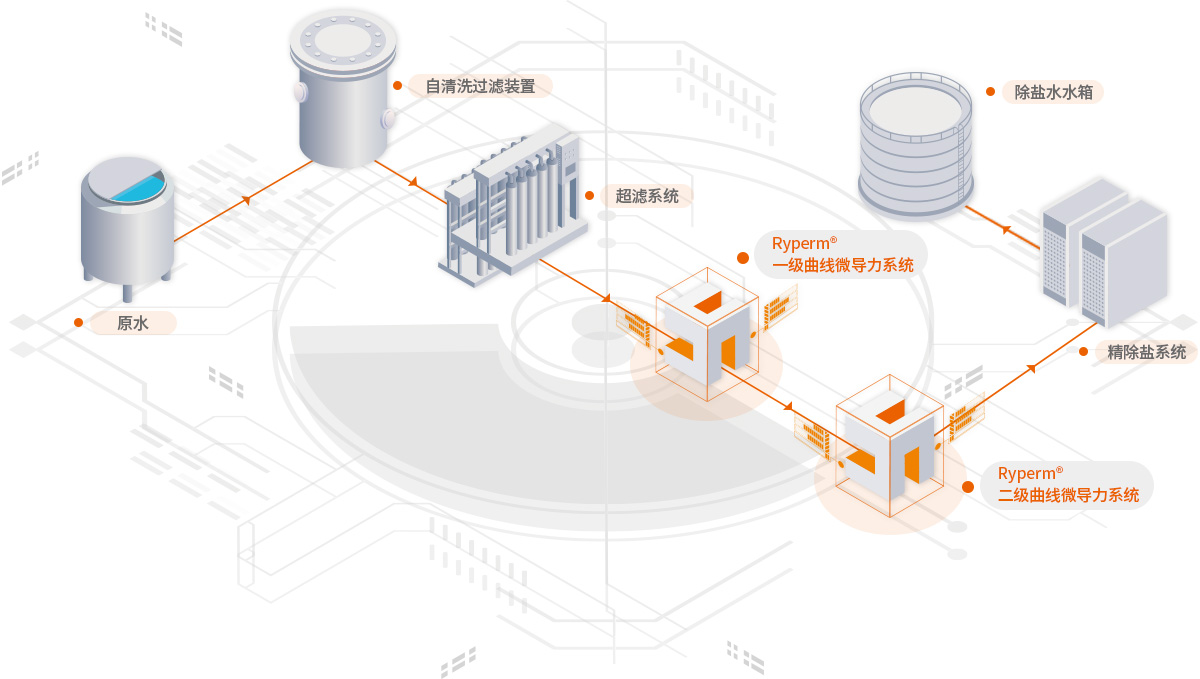 萊特萊德鍋爐補給水工藝采用自主研發(fā)的Ryperm曲線微導(dǎo)力技術(shù),結(jié)合多項涵蓋預(yù)處理、化學(xué)清洗、加藥等技術(shù),成功解決膜系統(tǒng)在高回收率條件下的污染問題,保證了膜系統(tǒng)的穩(wěn)定性,從而使該項膜技術(shù)的經(jīng)典應(yīng)用再度煥發(fā)光芒。
